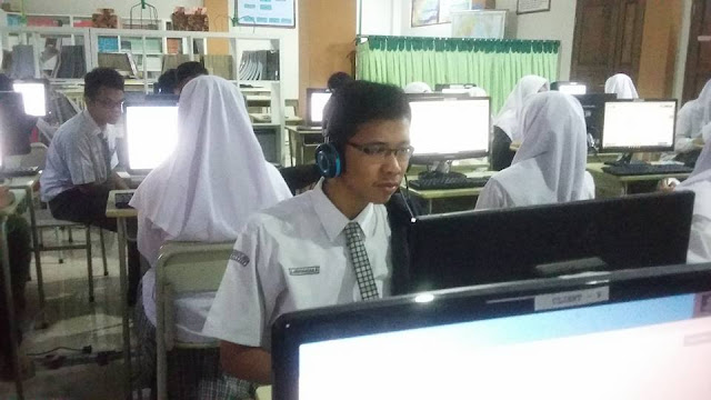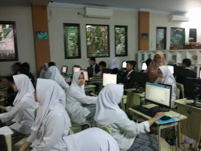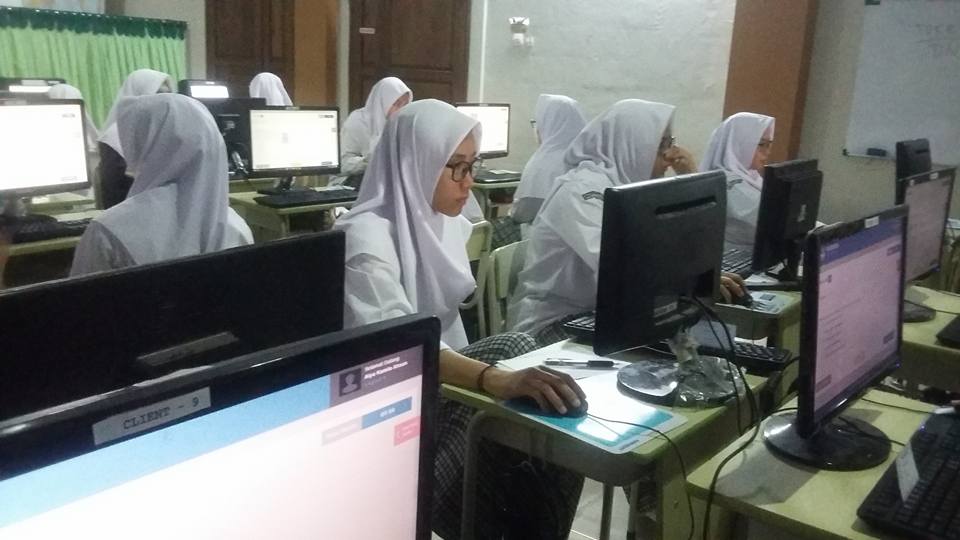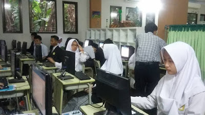 Memasuki ruang komputer para siswa bersemangat memilih komputer yang akan mereka gunakan. Selanjutnya mereka mendapatkan nomor ujian untuk mengisi data siswa. Tahap pengisian terakhir adalah pengisian token yang langsung disampaikan oleh proktor.